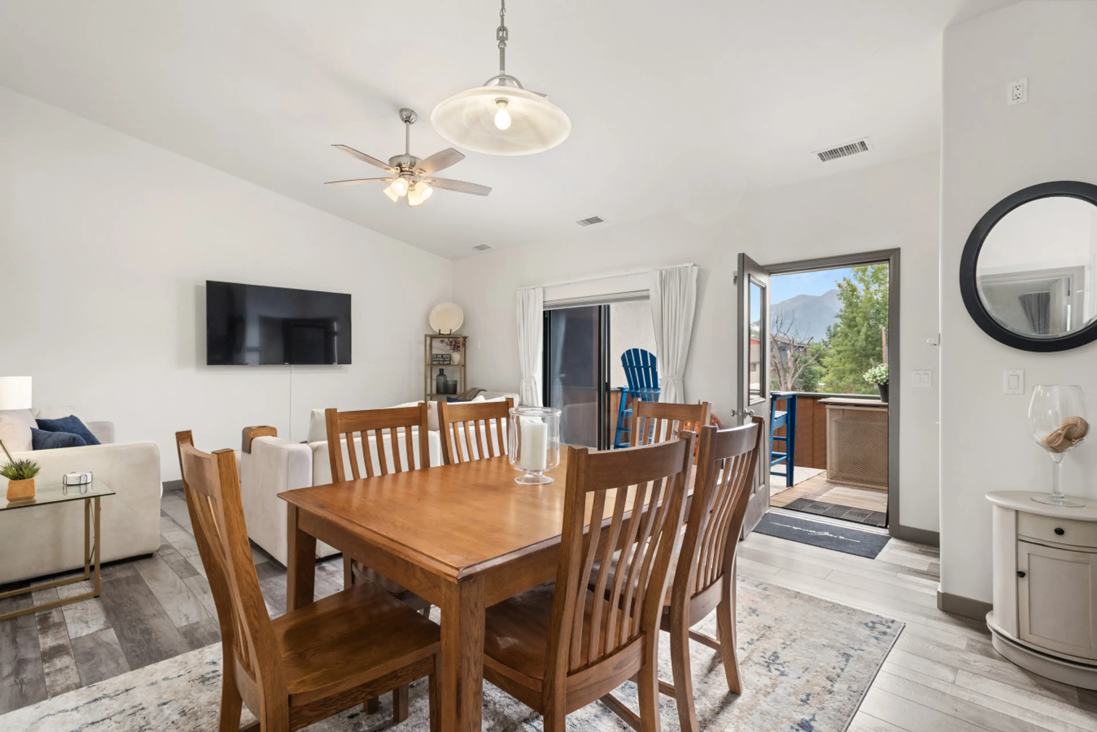 About this space Modern 2BR/1.5BA condo in the heart of Carbondale with stunning Mt. Sopris views. Features include a steam shower, updated kitchen with full cookware, dining for 6, washer/dryer, and central A/C. Walk to restaurants, shops, Pilates, yoga, and coffee. Dog-friendly with a small dog p...